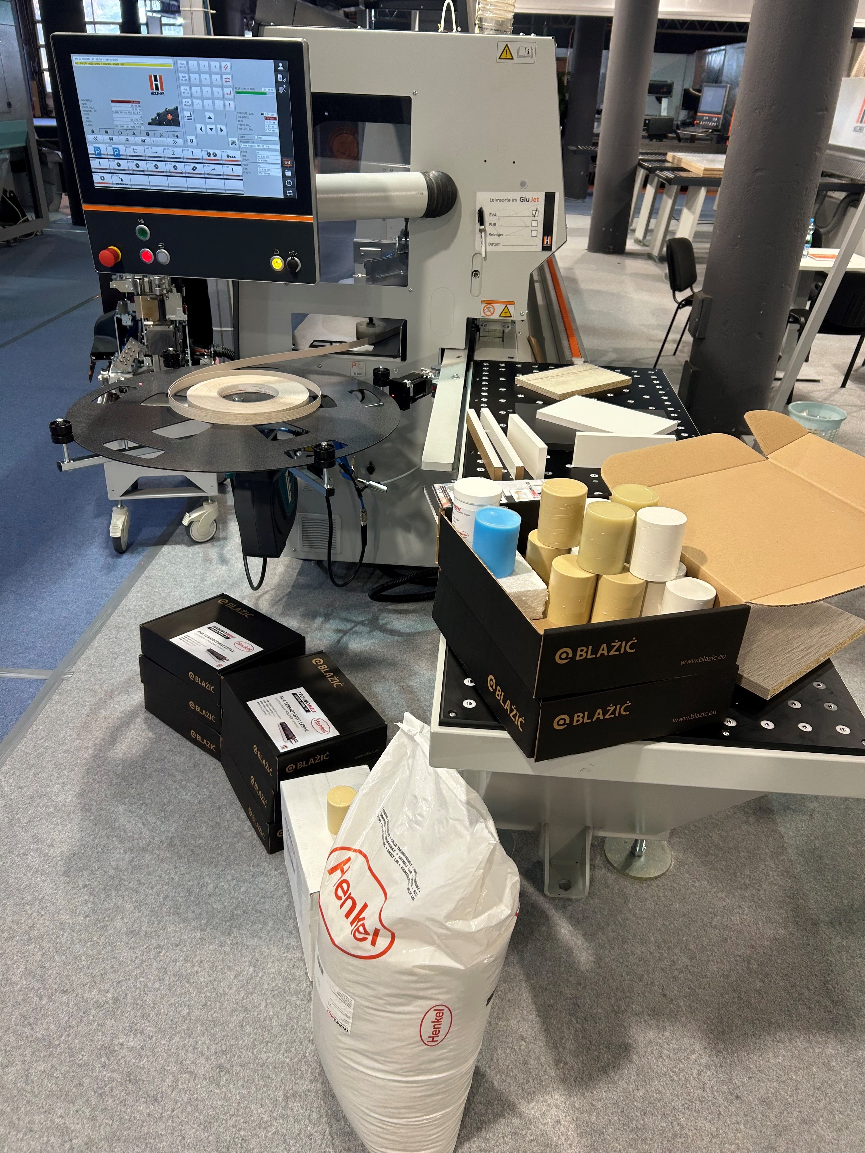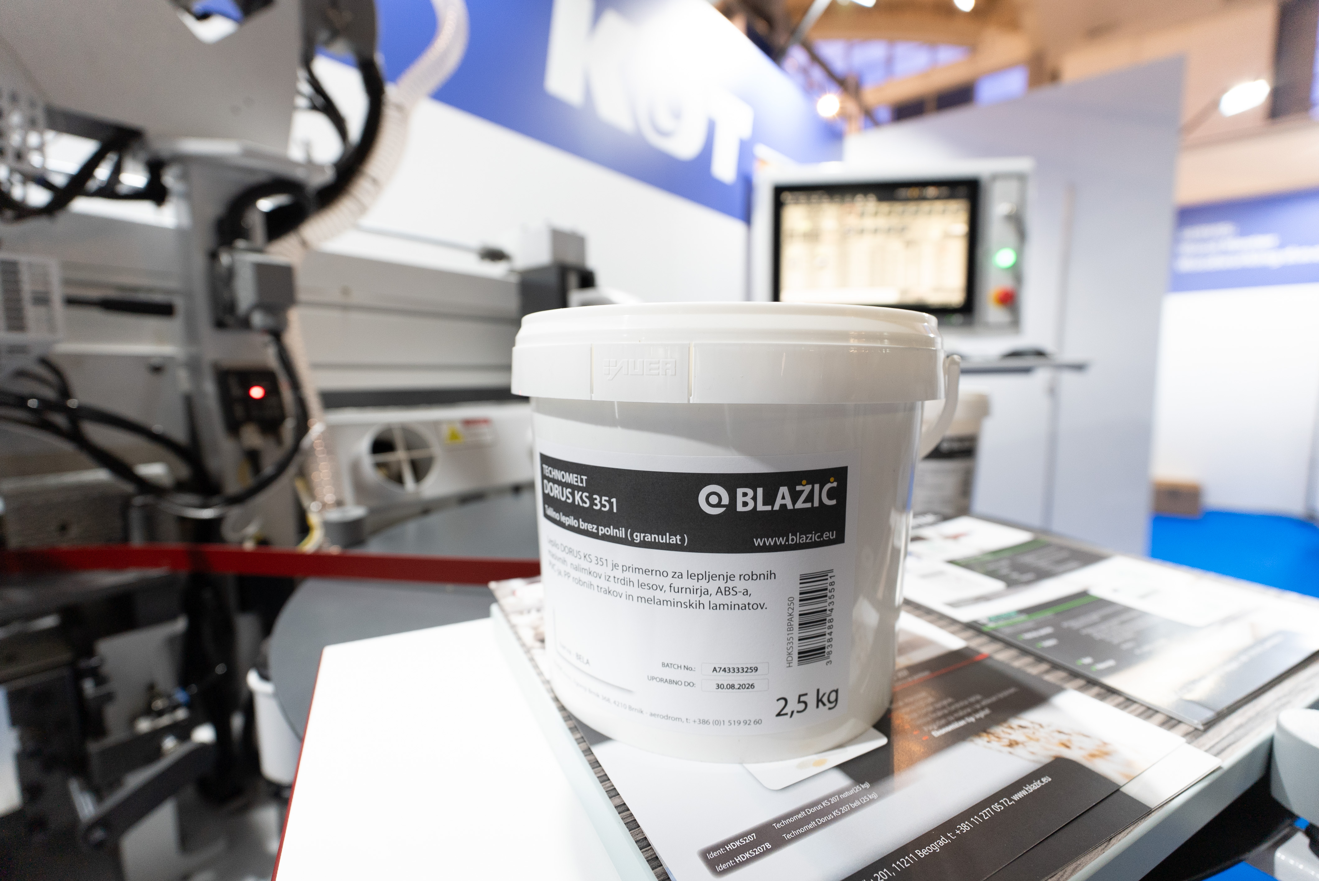 Na obeh razstavnih prostorih so imeli obiskovalci priložnost videti celotno ponudbo naših industrijskih čistil, ki so ključnega pomena za kakovostno robno obdelavo pohištvenih elementov.
