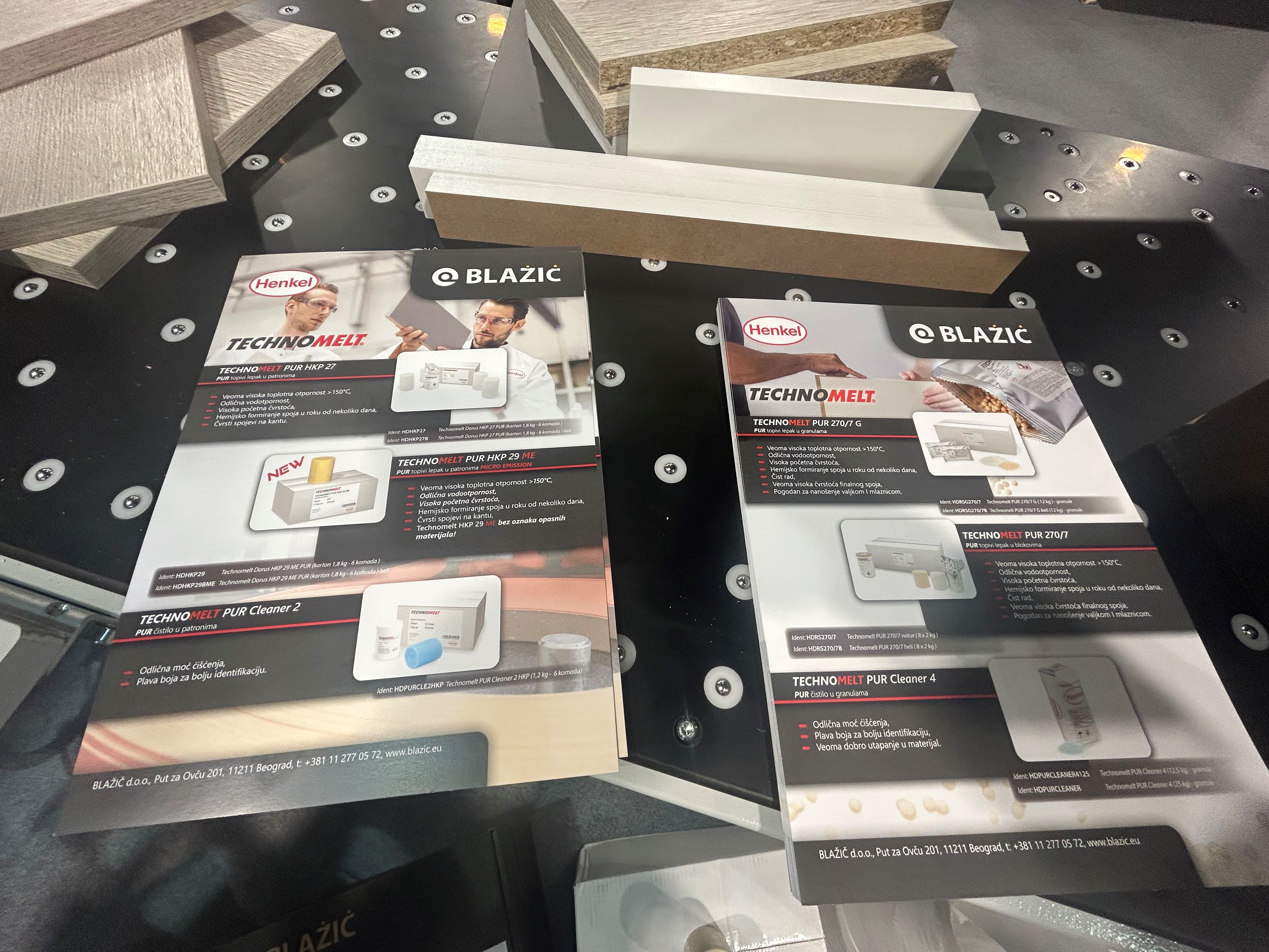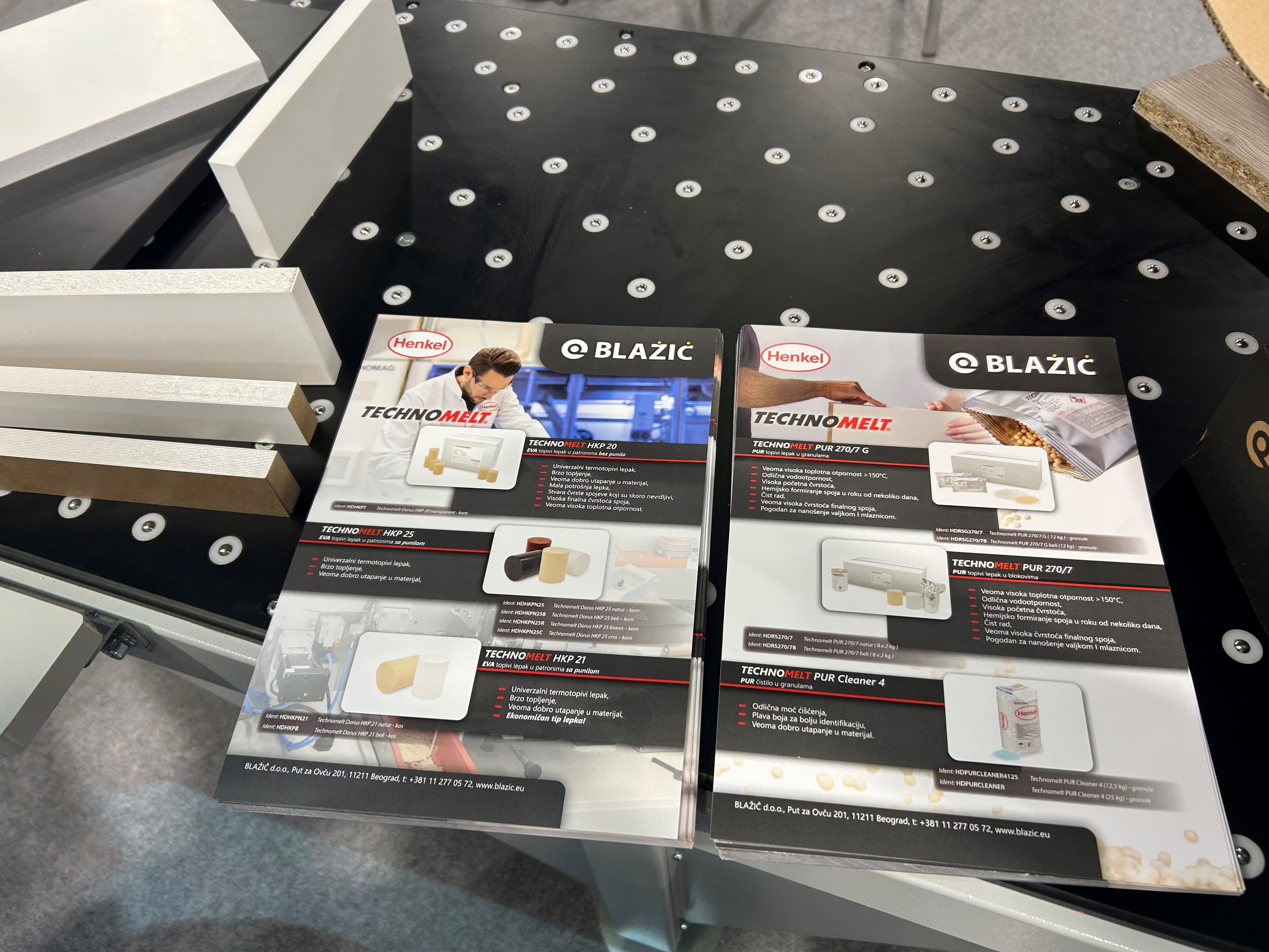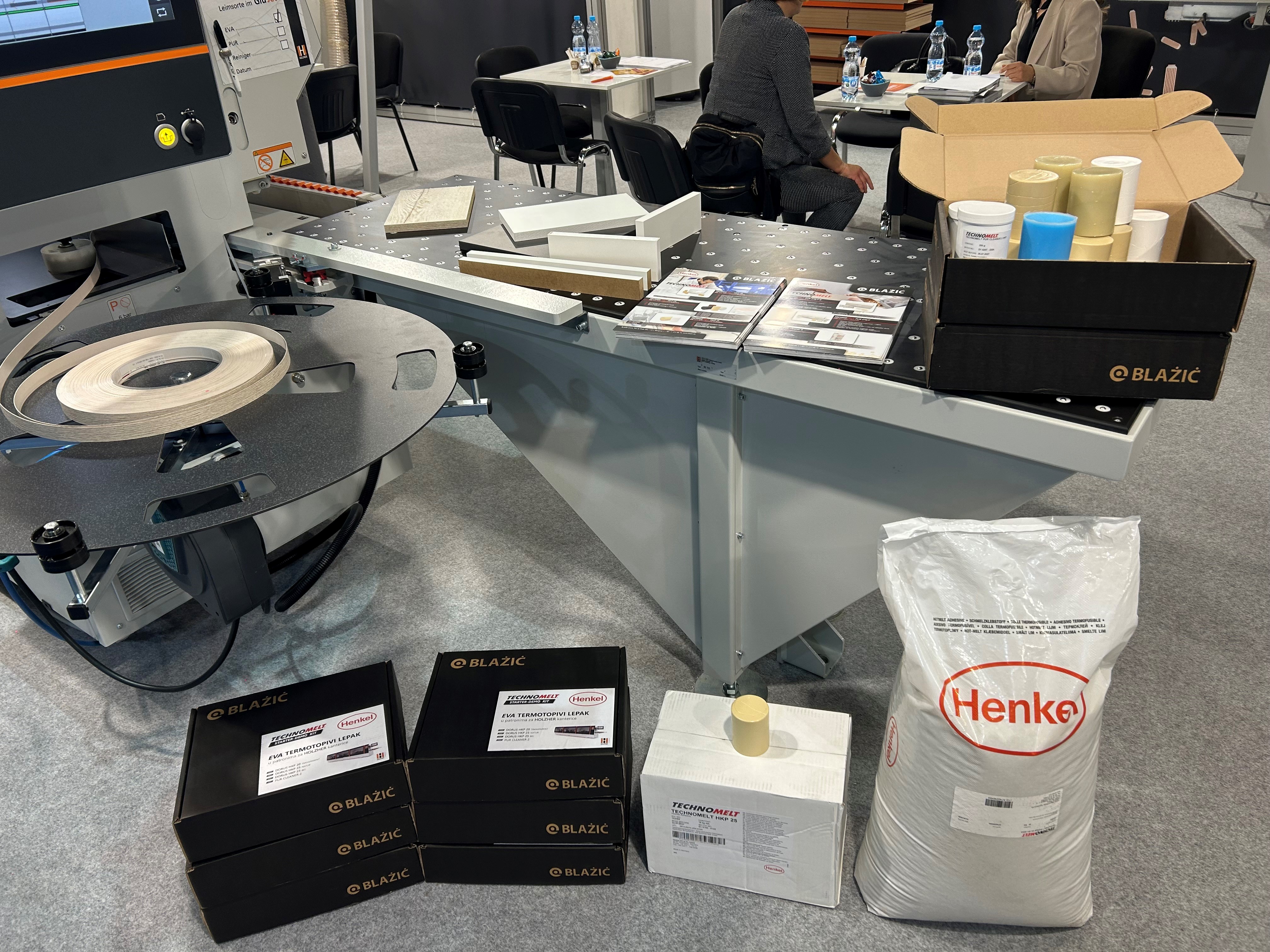 Na letošnjem sejmu pohištva v Beogradu smo uspešno predstavili program talilnih lepil HENKEL in profesionalnih industrijskih čistil. Na razstavnih prostorih partnerjev LESTROJ iz Slovenije, zastopnika vse bolj prepoznavnih robnih lepilk kitajskega proizvajalca KDT, smo razstavili program EVA talilnih lepil proizvajalca HENKEL, namenjenih za robno lepljenje v proizvodnji ploskovnega pohištva. Na razstavnem prostoru podjetja Interexport, zastopnika in distributerja robnih lepilk Holz Her za območje Srbije in Makedonije, pa smo predstavili EVA in PUR talilna lepila v kartušah proizvajalca Henkel, ki zagotavljajo kvalitetno robno obdelavo.