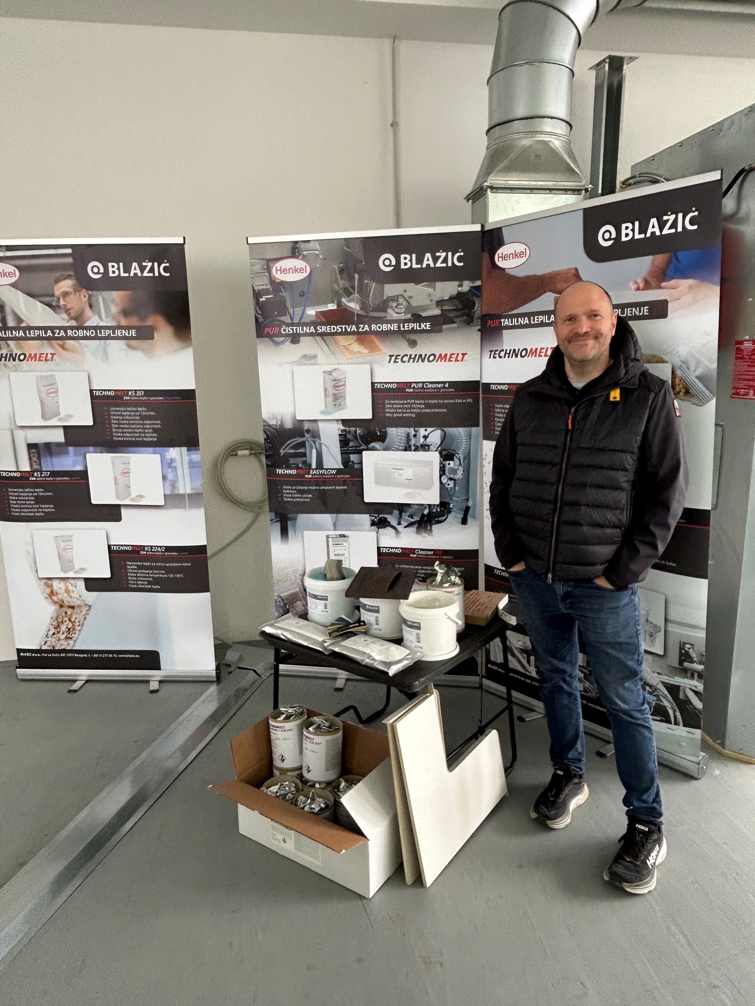 At the in-house fair of KTP, the representative and distributor of edge banding machines from the German manufacturer HOMAG, we presented hot melt adhesives and cleaning agents for edge banding machines produced by HENKEL.
